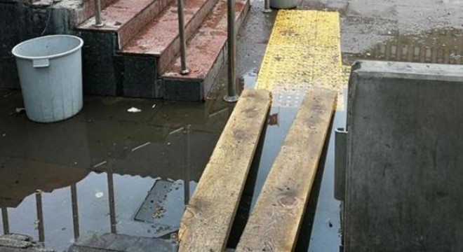 * Batımerkez metro istasyonu’nun Atlantis tarafındaki çıkışı, her yağışta fotoğraflardaki hâli alıyor. Metro açılalı dört sene oldu ama durum değişmedi. Bir istasyonun çevre düzenlemesini adam akıllı yapmak bu kadar zor olmamalı.