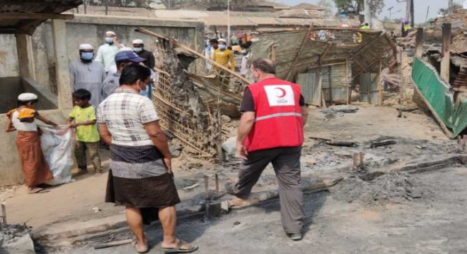 Bangladeş’te bulunan kamp alanlarında çıkan yangın sonrası Arakanlı Müslümanların bulunduğu 10 binden fazla barınak kullanılamaz hale geldi. Yangında Türkiye’nin yaptığı hastane de büyük hasar alırken, hasta ve yaralılar sorunsuz bir şekilde tahliye edildi.