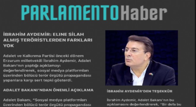 Adalet ve Kalkınma Partisi önceki dönem Erzurum milletvekili İbrahim Aydemir, Adalet Bakanı’nın yaptığı açıklamayı değerlendirerek, sosyal medya platformları üzerinden bölücü terör örgütü propagandası yapanlara karşı sert tepki gösterdi.