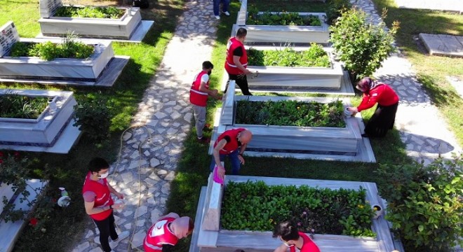 Genç Kızılay Gönüllüleri bu bayramda ziyaret edilemeyen mezarlıkları da unutmadı, bakımsız kalan mezarların bakımlarını yaptılar.