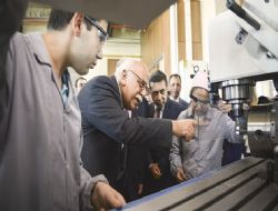 Milli Eğitim Bakanı Nabi Avcı, okulun torna ve tesviye atölyelerini gezerken, eline aldığı eğeyle çelik bir parçanın yüzeyini parlattı.ANKARA /