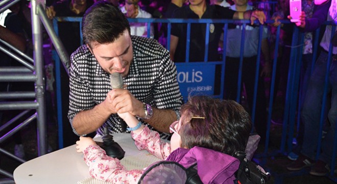 Tekerlekli sandalye ile konsere gelen bir engelli hayranının yanına giden Ceceli, minik hayranı ile düet yaptı. Engelli kızın mutluluğu gözlerinden okunurken, festivalin bu akşamki konuğu ise, ünlü şarkıcı Atiye olacak.