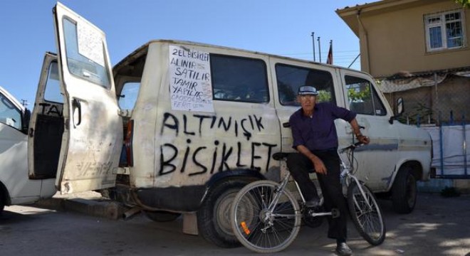 Ankaralı bisiklet tamircisi 69 yaşındaki Ferit Altınışık, eski minibüsü ile 10 yıldır Başkent’te ilçe ilçe gezerek bisiklet tamiri yapıyor.